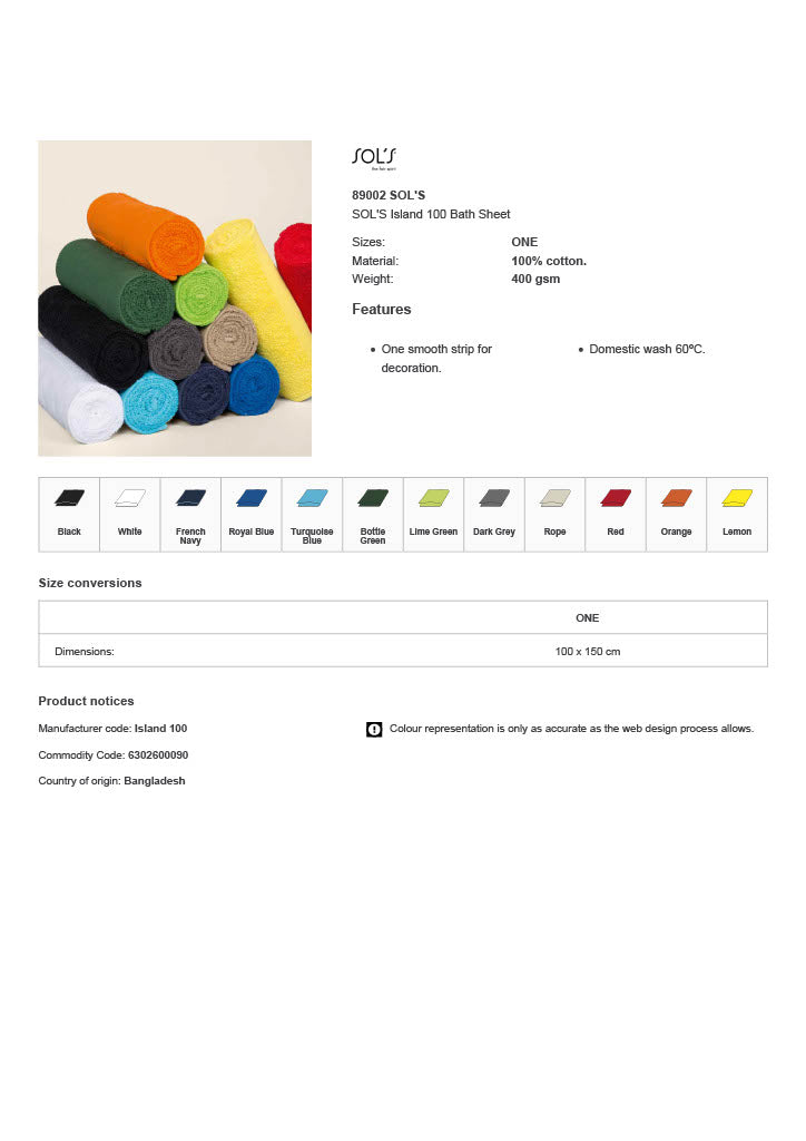 SOL'S Island 100 Bath Sheet